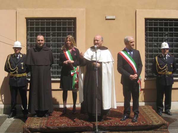 [Galleria fotografica: foto 29, da sinistra, il Padre Genrale dell'Ordine e p. Lucio Maria Zappatore - tra i rappresentanti del Comune di Roma - in via del Colosseo per l'apposizione della targa che ricorda il Convalescenziario realizzato dal beato Angelo Paoli]