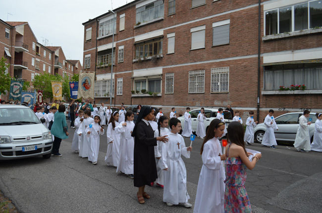 Sabato 28 maggio, dopo la S. Messa vespertina si è svolta la processione per le strade e i cortili del quartiere. Al termine la grande festa in cortile con musica, balli e un piatto di pasta da condividere in compagnia.