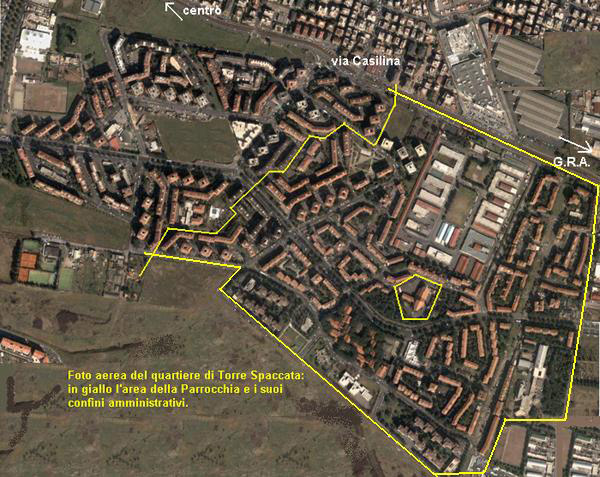 "La Parrocchia è una casa di fratelli, resa accogliente dalla Carità"Il nome della zona è dato da una torre diroccata che si affaccia su via di Torre Spaccata, al confine sud del nostro quartiere, ora non più visibile a causa della costruzione di abitazioni e di un grande parcheggio.